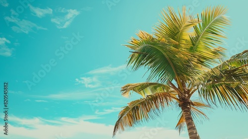Fototapeta premium Summer palm tree and Tropical beach with blue sky background : Generative AI