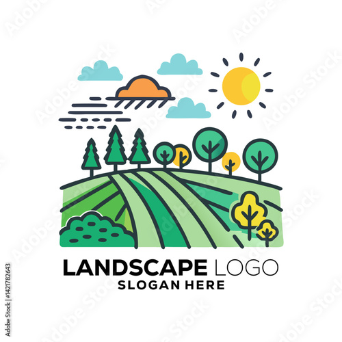 © Wildan, Naklejka premium Summer park abstract icon with shady alleys, trimmed trees and kidney shaped lawn, for nature or landscape design