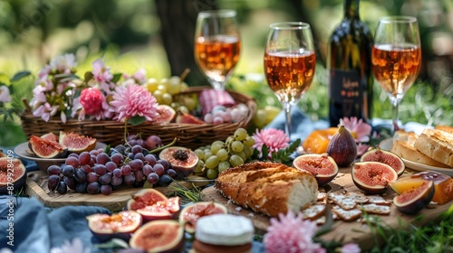 © Sarina, Naklejka premium Summer Picnic with Wine and Figs