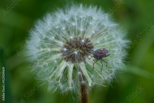 Fototapeta premium summer picture, summer mood, close-up of a dandelion and a bug sitting on it