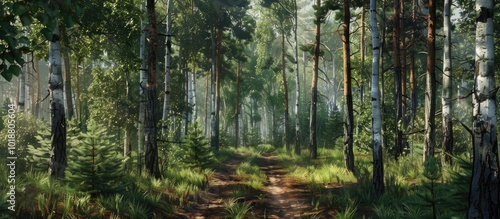 © The 2R Artificiality, Fototapeta premium Summer Pine Birch Forest