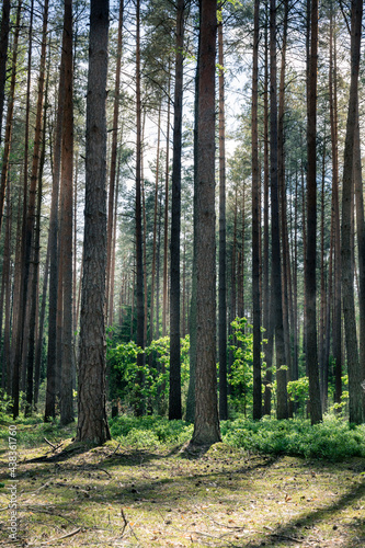 Fototapeta premium Summer pine forest landscape in the sunny day