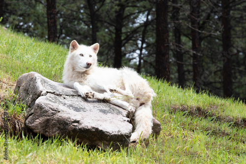 © mitgirl, Obraz premium Summer Portrait of an Arctic White Wolf in a Forest