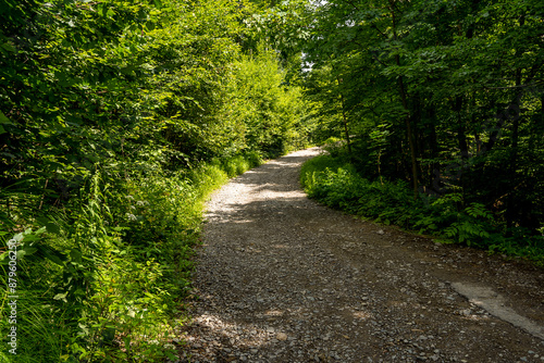 Fototapeta premium Summer road in the woods, dirt road in the woods