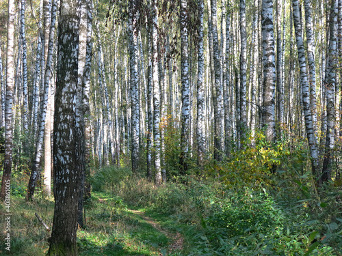 © Lumatis, Fototapeta premium summer Russian birch grove under the sun