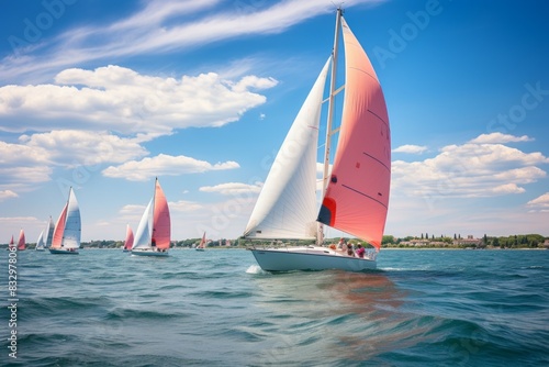 © Sidewaypics, Naklejka premium Summer sailing regattas - Generative AI