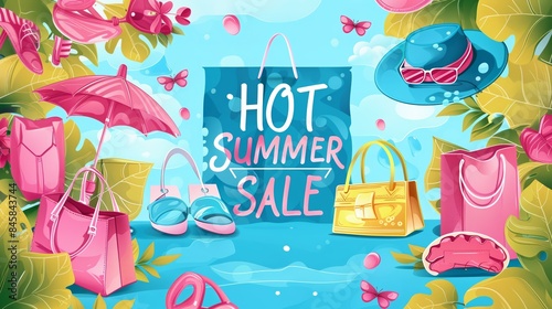 © Joyce, Naklejka premium Summer sale promotion advertisement vector design template for flier, poster, website, business