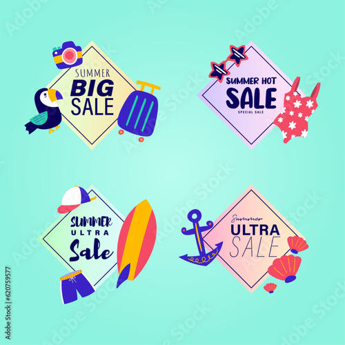 Fototapeta premium summer sale signs brochure vector. Special price offer coupon for social media post, promotion ad, shopping flyer, voucher, website campaign and advertising