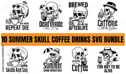 © MDSAJJADHOSSAN, Fototapeta premium Summer skull coffee drinks svg bundle with humorous quotes and beachy designs