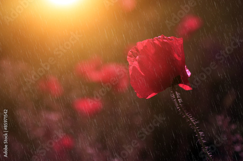 Fototapeta premium Summer / spring rain and beautiful poppy flower