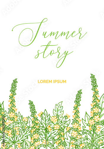 © Maljuk, Obraz premium Summer story. Vector summer linear floral background.