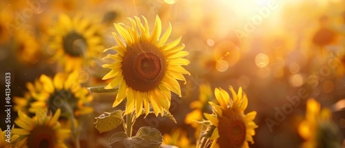© Corri Seizinger, Fototapeta premium Summer sunflower flower background banner - Closeup of blooming sunflowers on field