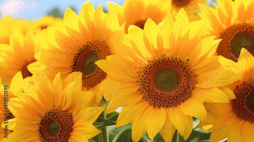 Obraz premium Summer sunflower flower background banner - Closeup of blooming sunflowers on...