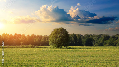 Obraz premium Summer sunny evening in the field and forest. Summer landscape.