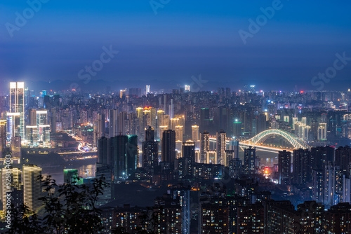 Obraz premium Summer sunset dusk and night city scenery, Chongqing, China