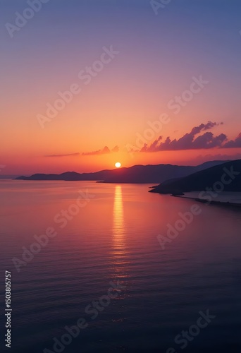 © Canvas Studio, Naklejka premium Summer Sunset on the Beach with Vibrant Sky – Generative AI
