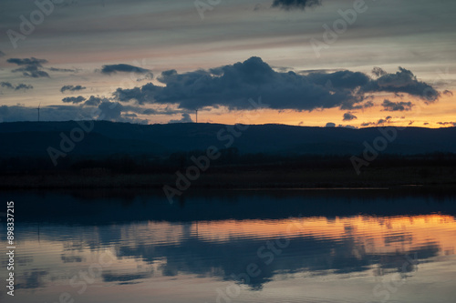 © mikhailgrytsiv, Fototapeta premium Summer sunset over wheat field. Beautiful sunset sky over countryside