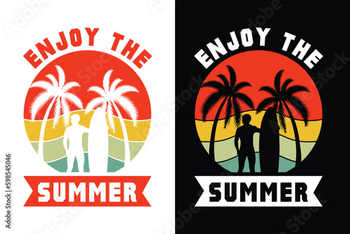 © Amazinart, Naklejka premium Summer t-shirt design bundle, summer beach vacation t-shirts, summer surfing t-shirt vector design