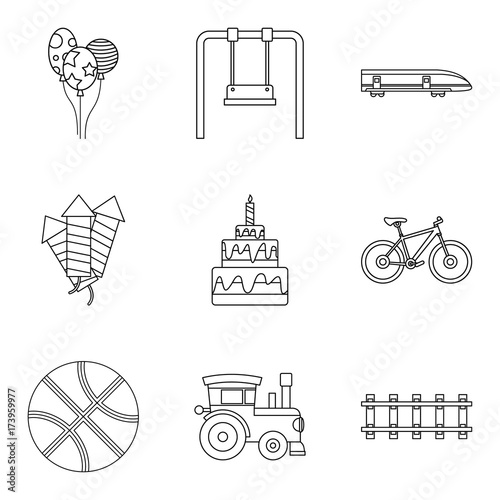 © ylivdesign, Naklejka premium Summer toy icons set, outline style