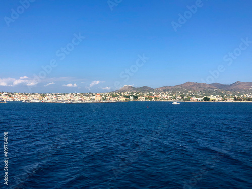 Fototapeta premium Summer Travel Vacation. View On Beautiful Beach On Greece Shore.