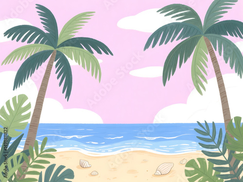 Naklejka premium Summer tropical beach palm tree illustration
