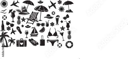 © jobaida, Fototapeta premium Summer vacation set, silhouette vector illustration.