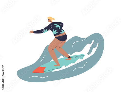 Obraz premium Summer vacation with happy girl surfing in ocean. Activity for summer...