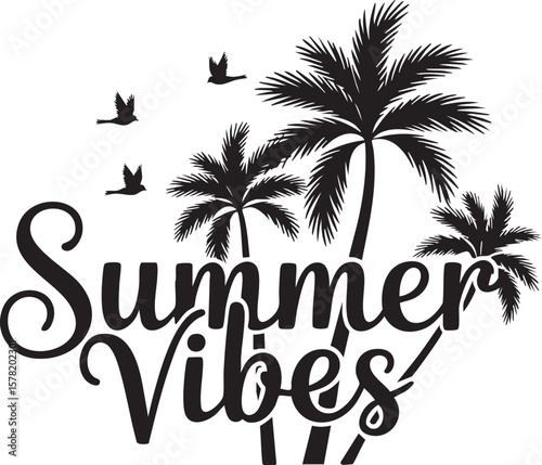 Naklejka premium Summer Vibes Palm Trees, Birds, and Tropical Escape Illustration