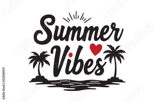 Naklejka premium Summer vibes tropical beach palm trees graphic