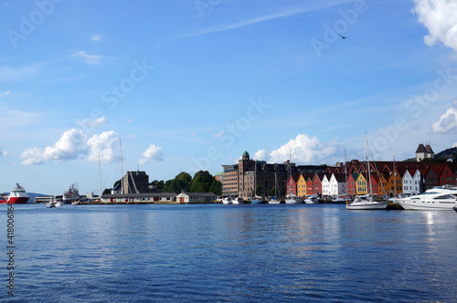 © Lunar.Studio, Fototapeta premium Summer View of Bergen Harbor and Bryggen, Norway