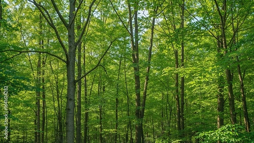 © AkuAku, Fototapeta premium Summer view of flourishing young sugar maple forest
