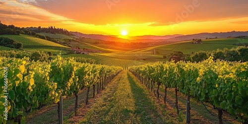 © flow art 7, Naklejka premium Summer Vineyard Panoramic View at Sunset