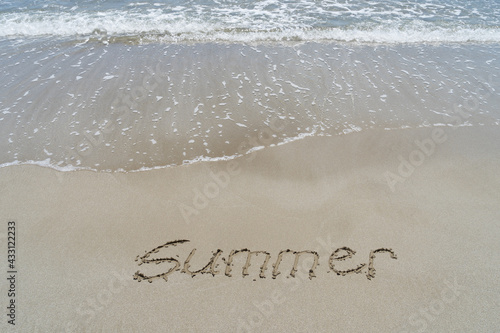 Fototapeta premium summer written in fine sand on the beach