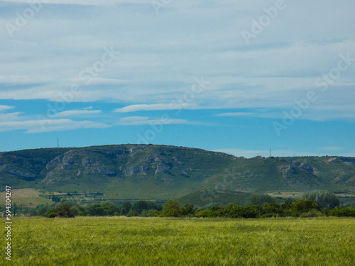 © Sebastien, Fototapeta premium Sumptuous provencal landscape in the Alpilles in Provence in France with a beautiful and verdant meadow and the hills of the Orgon plateau in the background