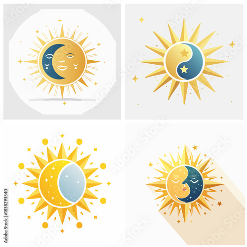 © Martina, Fototapeta premium Sun and moon celestial symbols collection golden and blue icon set for designs