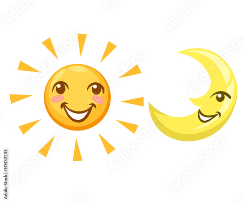 © Alfmaler, Fototapeta premium Sun and moon day and night set Flat design style vector illustration.