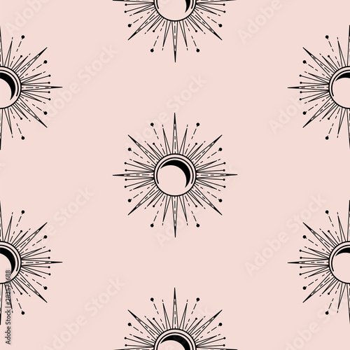 Obraz premium Sun and moon decorative boho style element design vector. Seamless pattern...