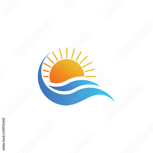 Obraz premium Sun and wave logo design symbolizing summer, beach, vacation, and travel...