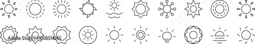Obraz premium Sun as Symbol of Nature and Weather Thin Icons Collection. Editable Stroke....