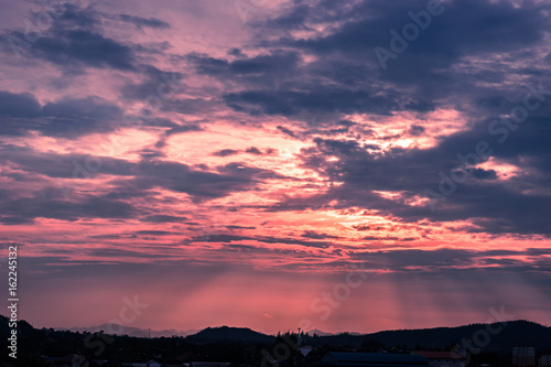 Fototapeta premium sun beam shine thru cloud to ground in evening