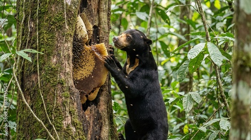 © Mio, Obraz premium Sun bear eating honey(蜂蜜を食べるマレーグマ)