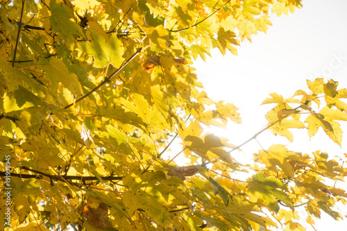 Fototapeta premium Sun between autumn leaves