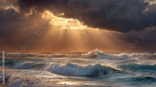Naklejka premium Sun break Over the Turbulent Sea