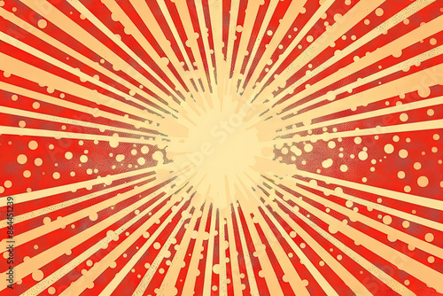 © swillklitch, Fototapeta premium Sun burst in retro style with grungy dots. Vintage sun rays background.