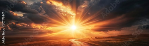 © AYESKIA, Fototapeta premium Sun Burst Over Field and Path