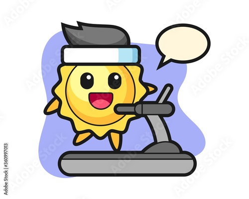© heriyusuf, Fototapeta premium Sun cartoon walking on the treadmill