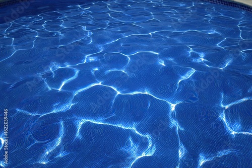 Fototapeta premium Sun-dappled blue pool water, rippled texture