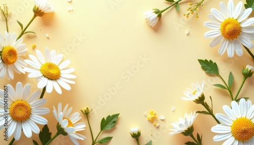 Obraz premium Sun-dappled chamomile floral pattern on neutral beige , flowers, pattern, shadow
