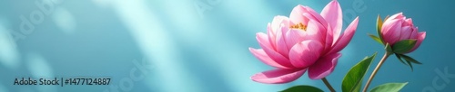 © Prasert, Fototapeta premium Sun-dappled peony, serene blue, minimalist style, sun, backdrop, photography