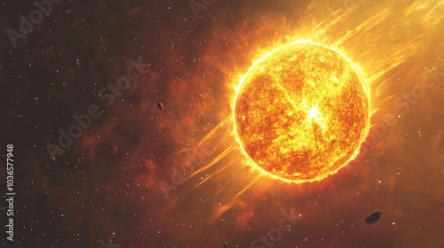 Fototapeta premium Sun depicted in outer space with intense solar activity in a 3D cartoon rendering
